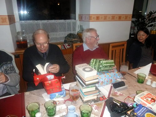 ... ... ein umjubeltes Zipfelmützentänzchen Dann beginnt die Verteilung, meist von Büchern,