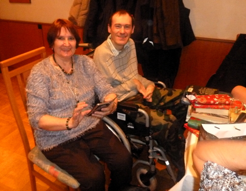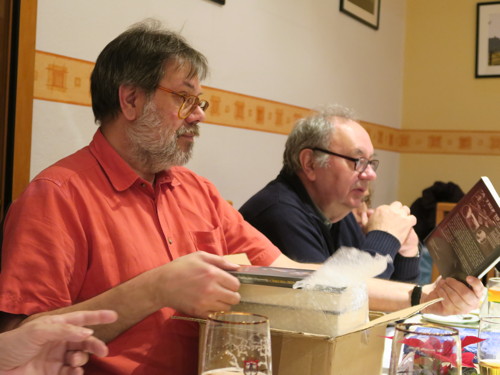 Kamera Astronom und Autor Slav Astrov mit Mutter Kathrin plaudert mit meiner Gerti Werner beim Auspacken, neben ihm Franzl