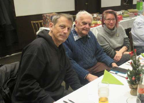 besprochen, hier Edi, Hans-Peter und Hans Helmuth bewundert sein Präsent, Autorin Silvia hat